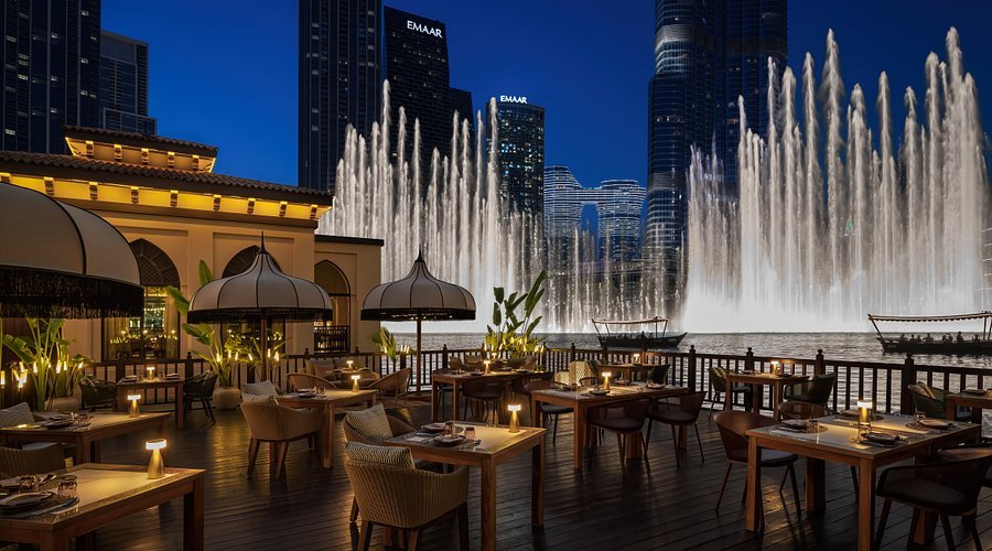 By the glowing Dubai Fountain, Thiptara offers Thai fine dining with royal-style curries and magnificent views. The elegant outdoor terrace is ideal for savoring expertly prepared green curry and fragrant tom yum in upscale surroundings.